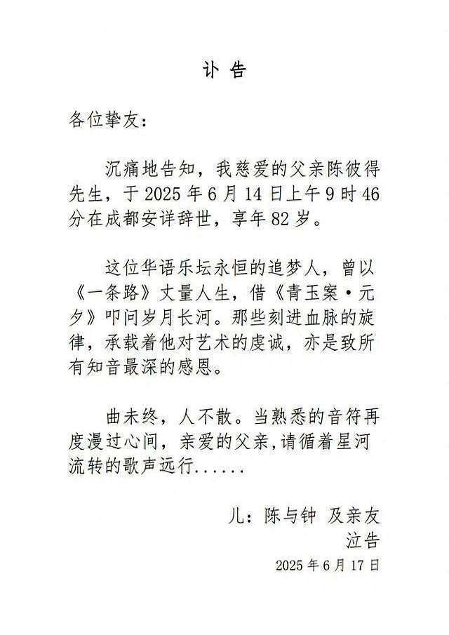 陈彼得厌世的讣告,就所以陈与钟的格局发布的。